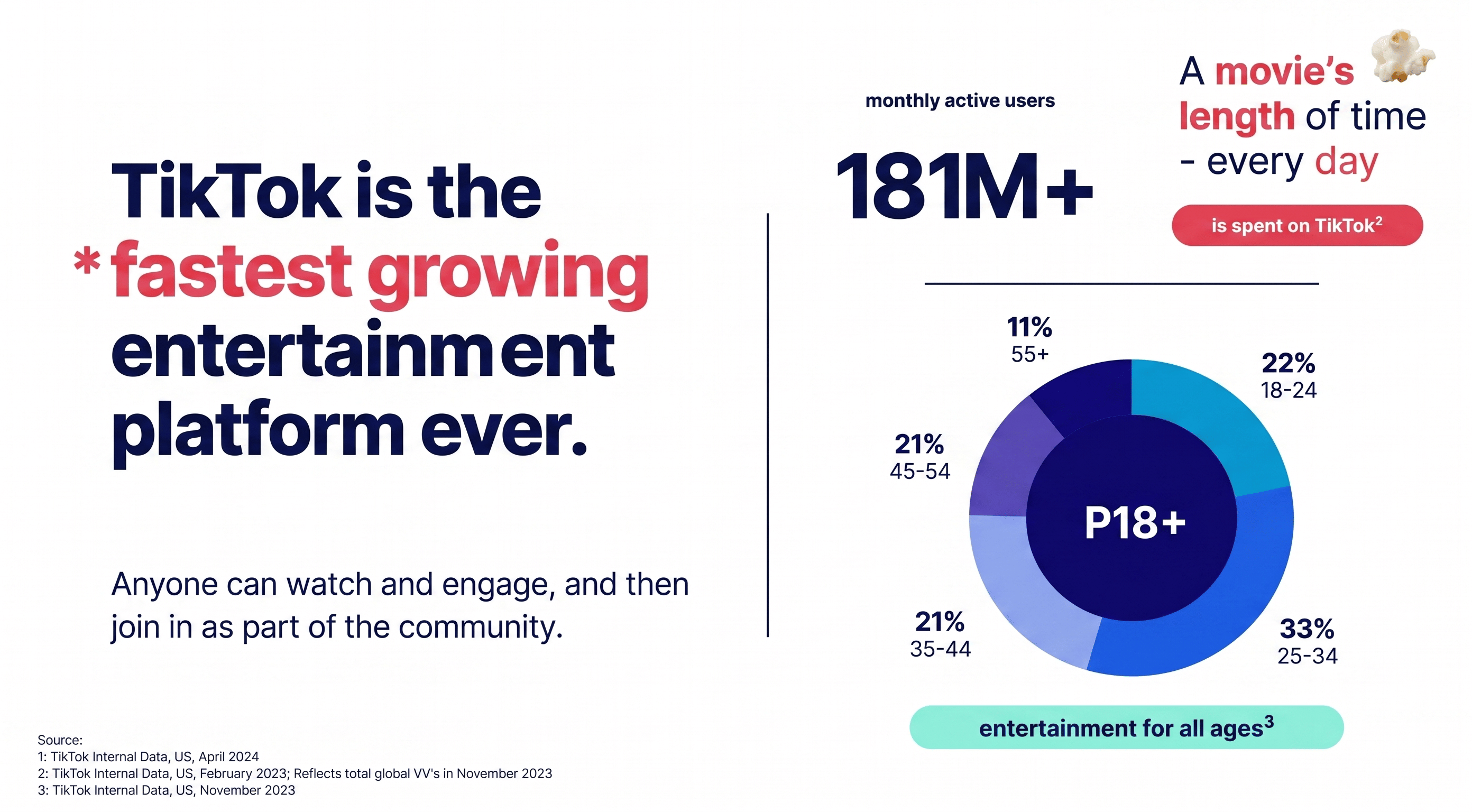 Over half of TikTok's users don't use Facebook or Instagram, giving you access to an entirely new audience segment. TikTok also tends to reach younger, earlier-in-funnel shoppers — making it a strong complement to your existing Meta strategy.